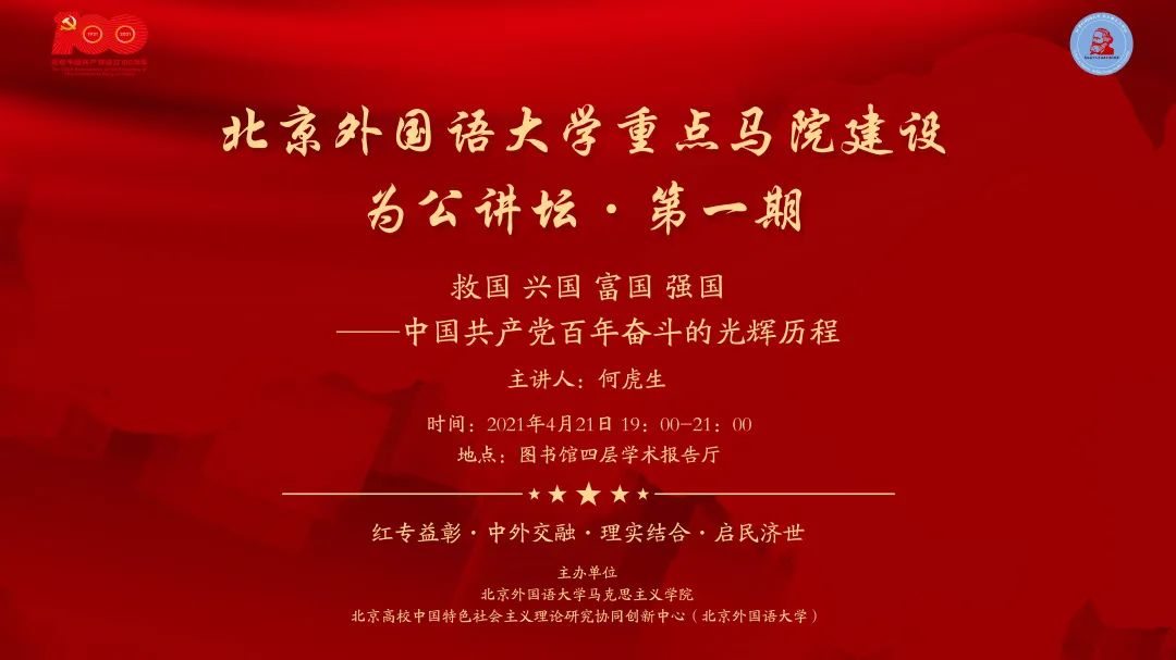 4月21日晚,馬克思主義學(xué)院“為公講壇”名師專家系列講座第一講在圖書館四層學(xué)術(shù)報(bào)告廳舉辦。中國人民大學(xué)馬克思主義學(xué)院教授、博士生導(dǎo)師,中國人民大學(xué)中共黨史黨建研究院副院長何虎生教授以“救國·興國·富國·強(qiáng)國——中國共產(chǎn)黨的百年奮斗歷程”為題為全院師生做了精彩報(bào)告。