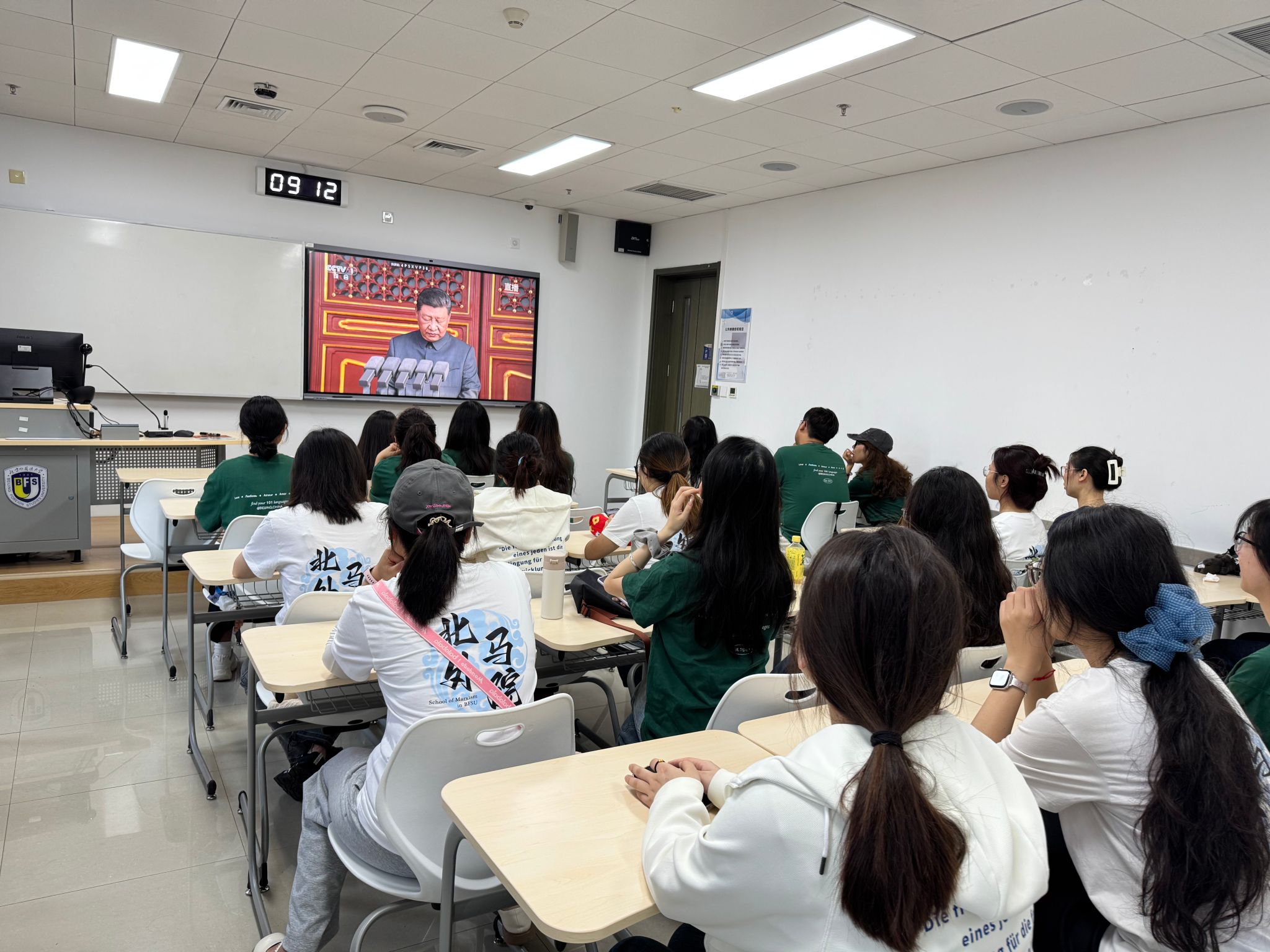 為進(jìn)一步引導(dǎo)廣大師生銘記歷史、緬懷先烈,共鑒勝利榮光,凝聚奮進(jìn)力量,9月3日上午,馬院組織全體師生收看紀(jì)念中國(guó)人民抗日戰(zhàn)爭(zhēng)暨世界反法西斯戰(zhàn)爭(zhēng)勝利80周年大會(huì)直播,學(xué)院全體教師和學(xué)生分別在學(xué)院會(huì)議室、黨員活動(dòng)室、教室集中收看大會(huì)盛況。