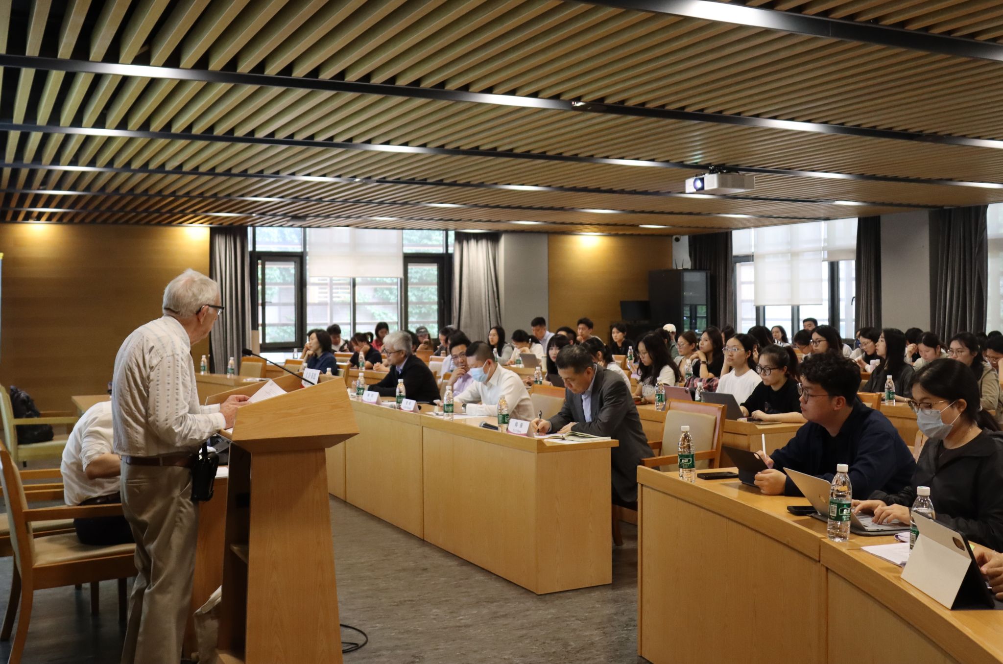 2025年5月16日下午,由北京外國語大學馬克思主義學院主辦的馬克思主義中外比較前沿講座在圖書館三層報告廳舉行,劍橋大學榮休教授、英國社會科學院院士大衛(wèi)·萊恩作了題為“帝國主義的前世今生”的學術報告。馬克思主義學院院長韓強教授擔任主持人,國際關系學院院長謝韜教授、馬克思主義學院教師梁爽博士擔任與談人,德國海德堡大學研究員姜宏博士擔任學術翻譯。來自馬克思主義學院、國際關系學院、國際新聞與傳播學院、西班牙語葡萄牙語學院、英語學院等院系的七十余名師生參加了本次講座。
