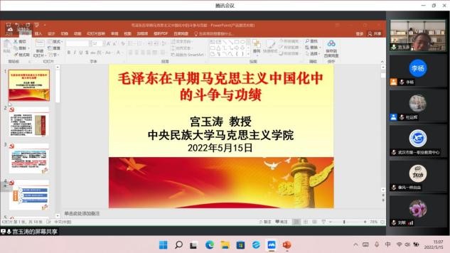 中央民族大學(xué)馬克思主義學(xué)院教授宮玉濤以《毛澤東在早期馬克思主義中國化中的斗爭與功績》為題向大家講述了以毛澤東同志為代表的黨的第一代中央領(lǐng)導(dǎo)集體是如何擘畫和推進馬克思主義中國化偉大事業(yè)的。他指出,斗爭精神是毛澤東同志在推進馬克思主義中國化中所留下的寶貴財富,也是習(xí)近平總書記特別強調(diào)的,今天我們更應(yīng)該領(lǐng)會和發(fā)揚偉大的斗爭精神。