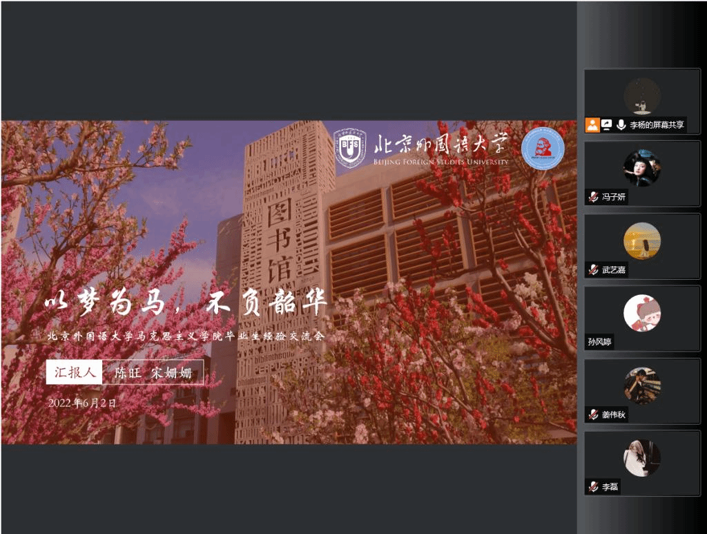 6月2日,馬克思主義學(xué)院研究生會召開“以夢為馬·不負(fù)韶華”畢業(yè)生經(jīng)驗(yàn)線上交流會,邀請2022屆兩位畢業(yè)生分享就業(yè)和升學(xué)經(jīng)驗(yàn)。會議由學(xué)術(shù)部邵鴻飛同學(xué)主持。