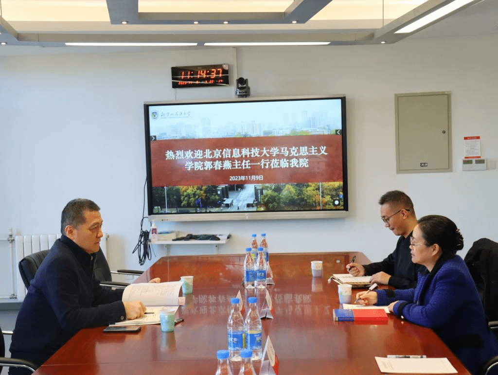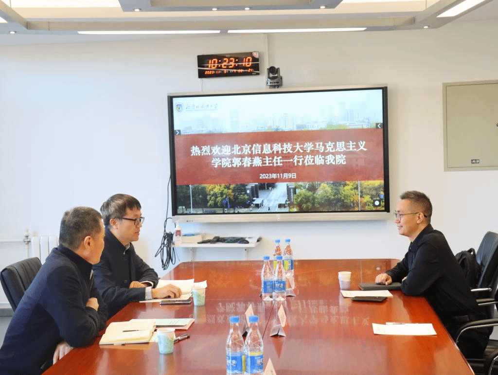 11月9日上午,北京信息科技大學大數(shù)據(jù)中心郭春燕主任、鐘名揚博士一行訪問我院,馬克思主義學院院長韓強、副院長孫磊與郭春燕主任一行進行了座談交流。雙方就運用大數(shù)據(jù)開展資料搜集與合作研究進行了深入探討,共同期待在馬克思主義理論和中共黨史黨建研究中開展廣泛合作,共同提高研究水平,為思政課教學提供更堅實的支撐。